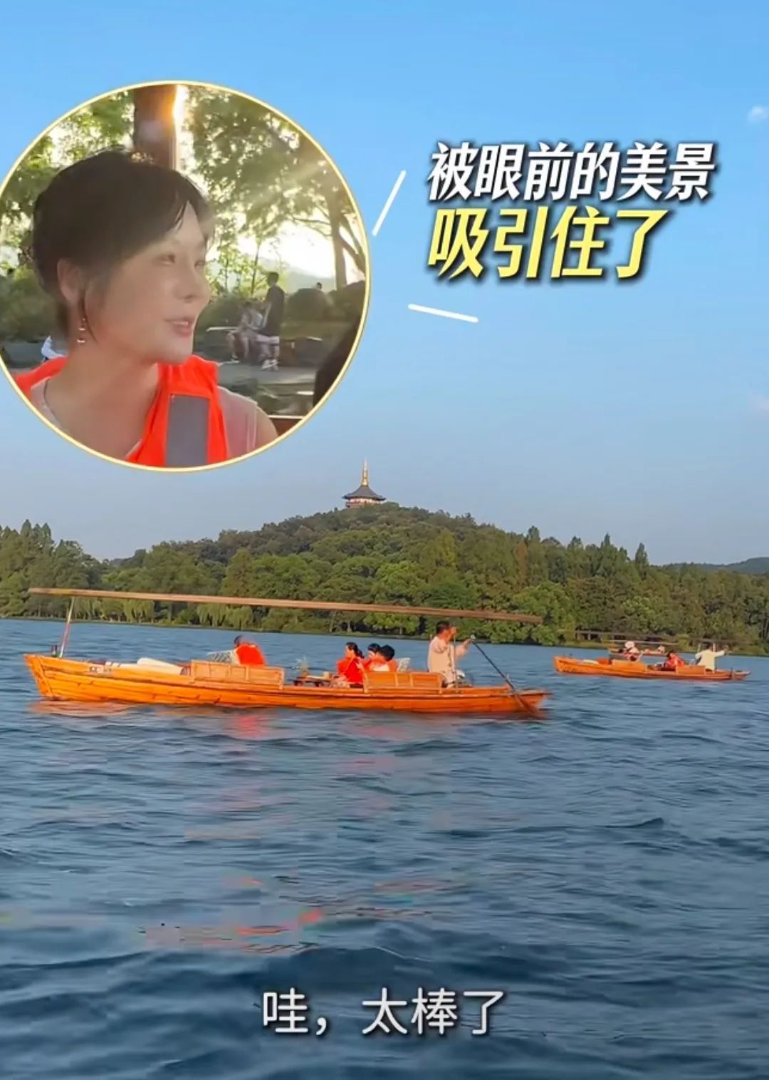 在船上,蔡琳直接被眼前美景吸引,直呼:“哇,太棒了!”