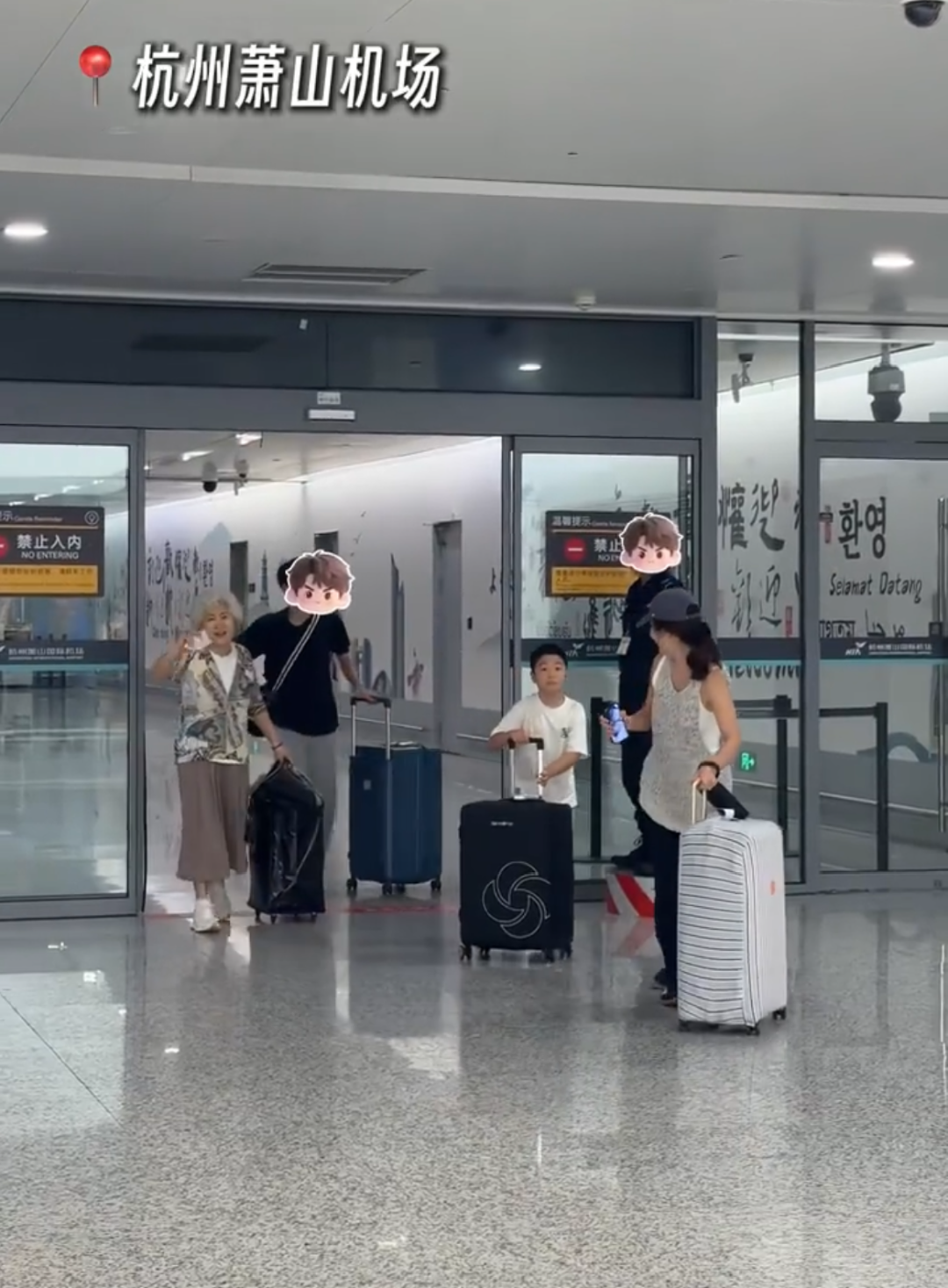 一家人落地萧山机场。