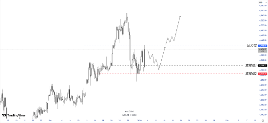 从技术结构观察,金价在前期冲高至高位后出现快速回落,但回调主要集中在4330美元附近一带反复整理,下方4300美元区域仍维持有效支撑,而上方4418美元附近则构成短线关键压力区,这种“高位回落但不破结构”的运行特征,更像是强势行情中的整理与消化,而非趋势性转弱的信号。