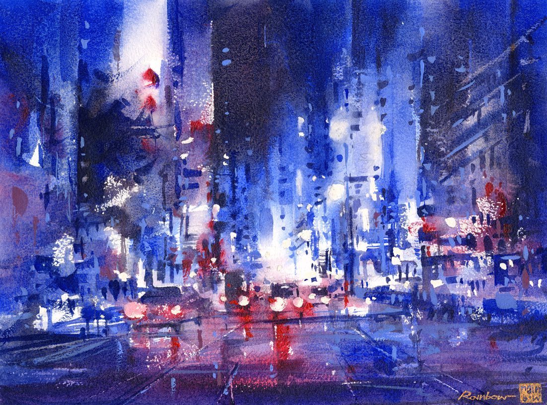 所以Rainbow喜欢黑夜里的水彩。