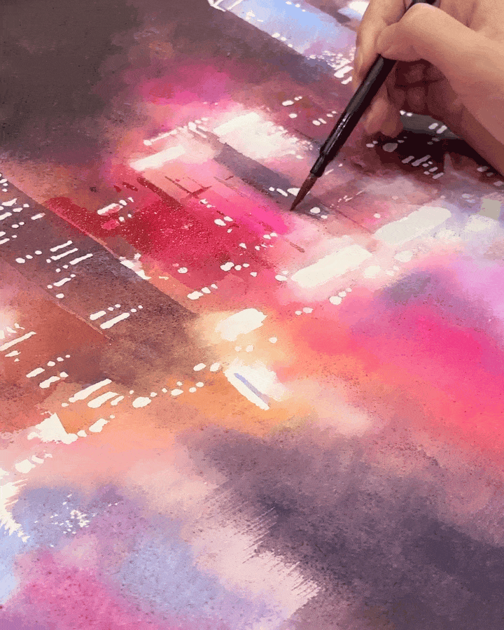 原来她笔下的水彩美得像黑夜里的烟花,