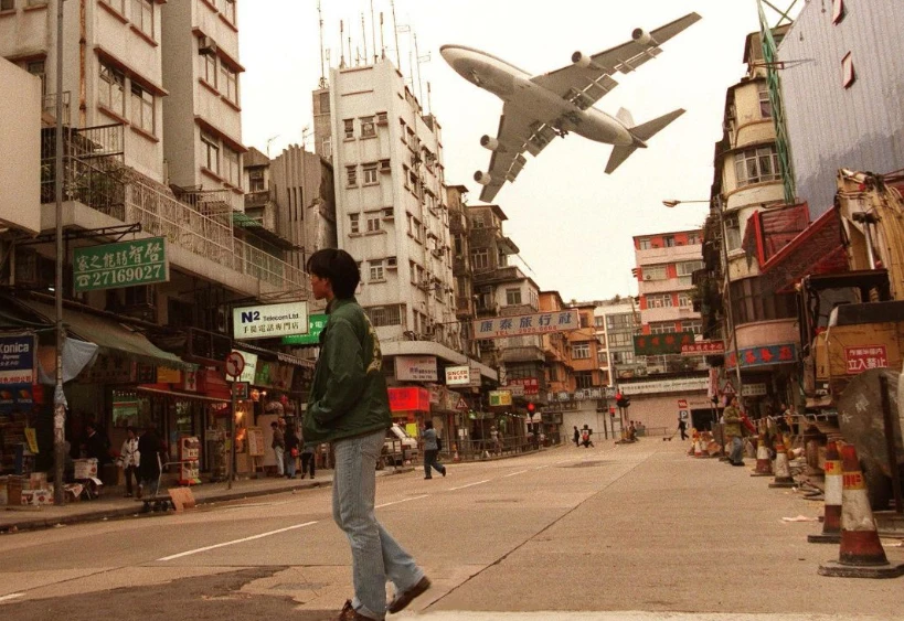 ▲启德机场的飞机擦着寨城楼顶飞过,飞机轰鸣声也是寨城的日常
